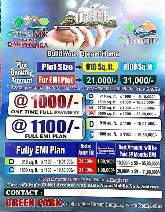 These Residential Plots in Sonki Darbhanga relish a magnificent view and presents a perfect example of comfort and luxury. Green Park by a renowned Green Homes Buildtech Pvt. Ltd
