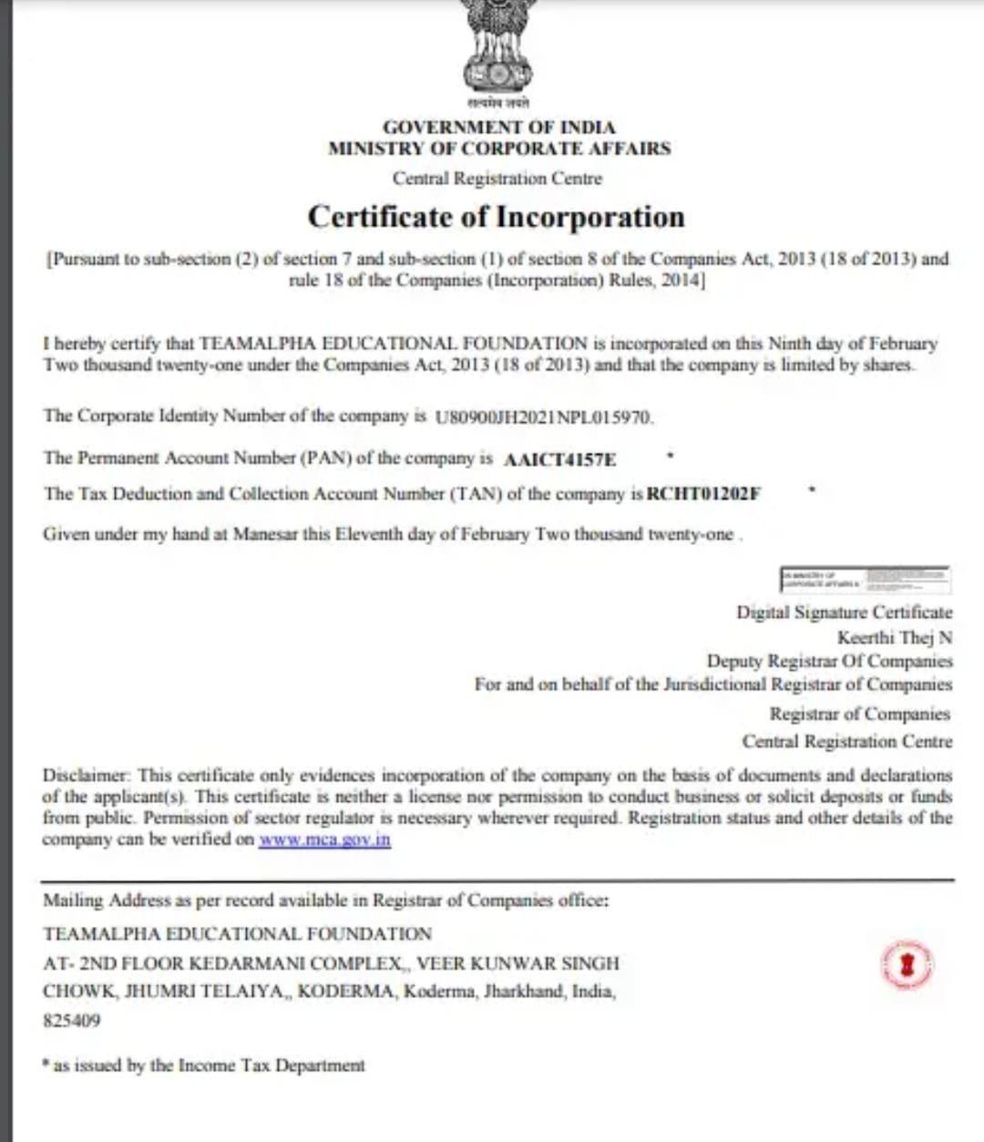 AT- 2ND FLOOR KEDARMANI COMPLEX, VEER KUNWAR SINGH CHOWK, JHUMRI TELAIYA, KODERMA, Koderma, Jharkhand, India, 825409