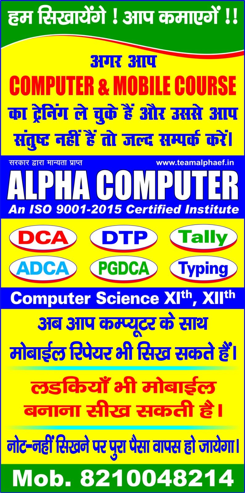 BY ANKIT SIR Courses Offered – DCA – Diploma in Computer Application ADCA – Advance Diploma in Computer Application DTP – Desk-Top Publishing Tally Typing (Hindi & English)