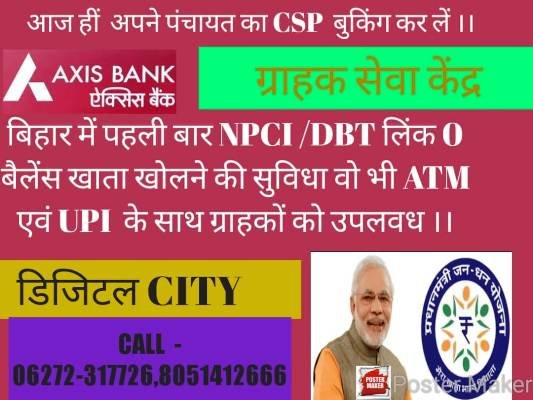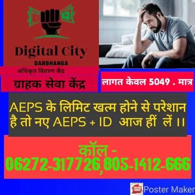 AEPS के लिमिट खत्म होने से परेशान है तो नए AEPS + ID आज हीं लें । NPCI, DET, आधार लिंक खाता हाथो हाथ, और भी बहुत कुछ । एक्सिस बैंक बैलेंस खाता और प्रत्येक खाताधारी को ATM कार्ड। क्या हैं फायदे ? 0 बैलेंस खाता प्रत्येक खातधारी को लोन की सुविधा ! @अधिकृत वितरण केंद्र ! @ग्राहक सेवा केंद्र ! @AXIS BANK ! # लागत केवल 5049/-मात्र (कॉल 06272-317726,605-1412-666). BASE कम पूंजी में सबसे बेहतर व्यपार तो CSP हीं है ना CSP भी ऐसा जो आज के समय की मांग हो ! केवल एक्सिस CSP पर हाथो हाथ बैलेंस खाता खुलता है, वो भी DBT आधार लिंक के साथ ।। Digital City Darbhanga ग्राहक सेवा केन्द्र (CSP Center)