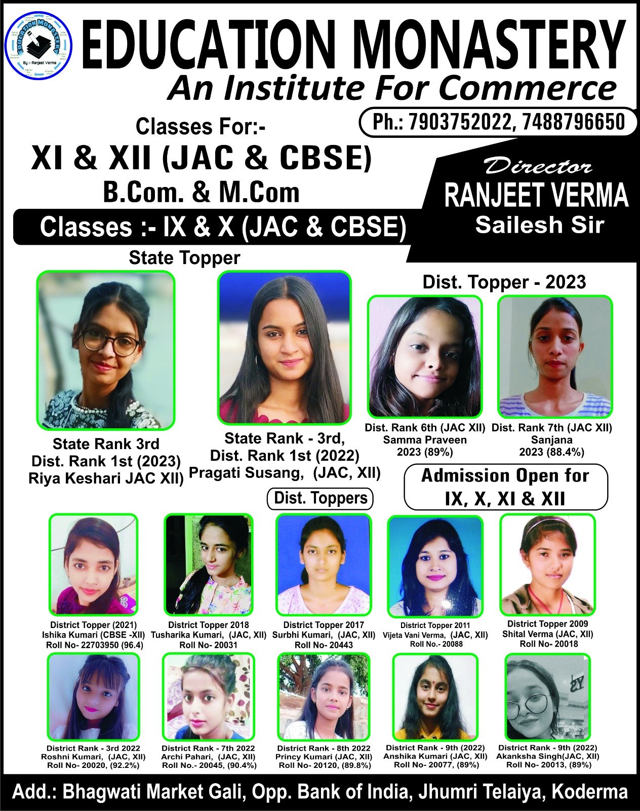 EDUCATION MONASTERY An Institute For Commerce Director RANJEET VERMA Sailesh Sir Classes For:- XI & XII (JAC & CBSE) B.Com. & M.Com
