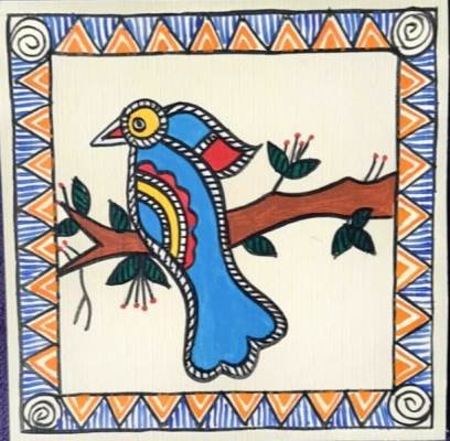 Madhubani Painting:- Madhubani painting is a major folk art trend which has developed in the north - western part of India, especially in Madhubani district of Vihar state. Origin of this art: In ancient times, local people used this art to depict their religious stories and natural scenes. People started using this art to decorate the walls of their homes. Bright colors are used in it. This painting is very popular among the people. In modern times, people have started doing it in sarees, bags and jute also. Artists often depict Padpuja and religious stories.