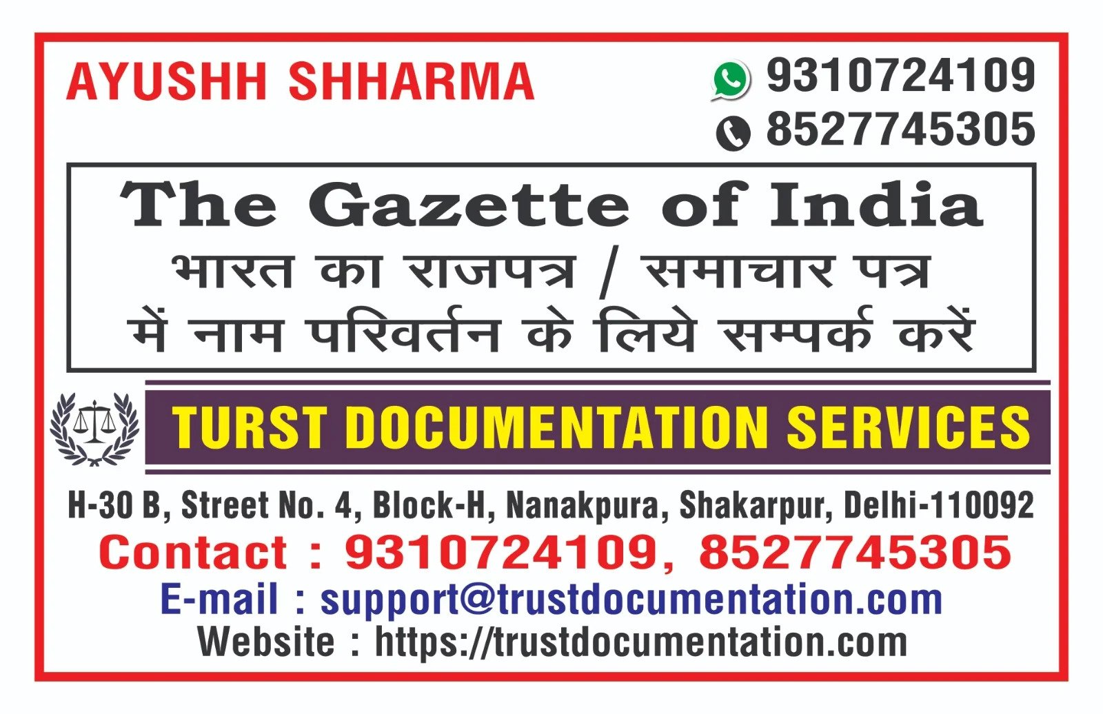 At Trust Documentation Services, we specialize as a Name Change Agent in Noida. Our services include: