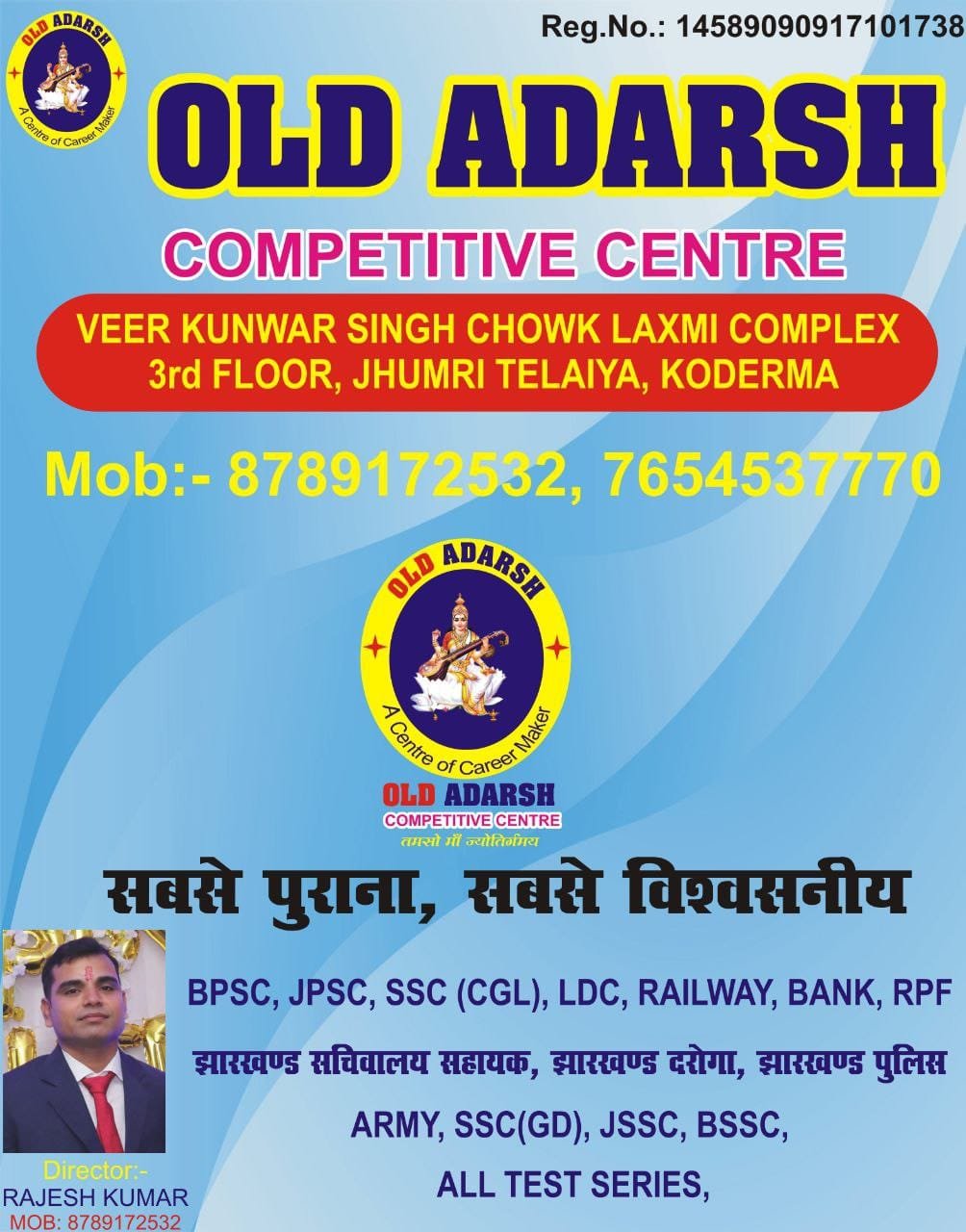 Competitive Our Course :- 1:- Defence 2:- / SSC GD JHARKHAND POLICE , 3:- JSSC All Exams , 4:- SSC CHSL/CGL, 5:- BPSC / JPSC , 6:- RAILWAY AND BANKING Old Adarsh Library Our Services :- 1:- 24x7 open , 2:- Ac Rooms , 3:- Unlimited wi-fi , 4:- washroom and Drinking water , 5:- Lunch Room , 6:- Noise Free Environment , 7:- Canteen , 8:- Comfortable chair & Desk , 9:- Discipline