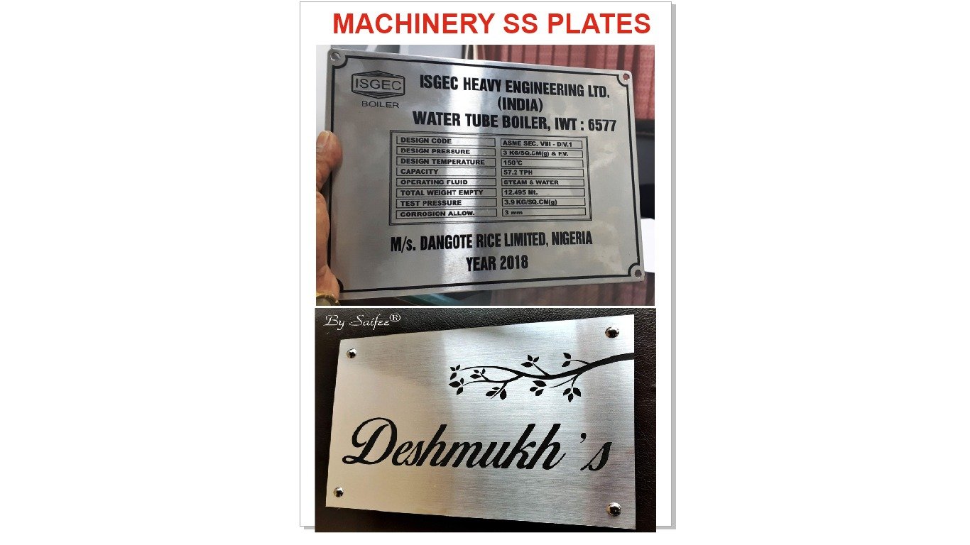 We are Mfrs. of New SS & Brass Coated Matter Printed Plastic Plates Weather Proof, Looks like Metallic Plate, Un Breakable, Drill Possible
